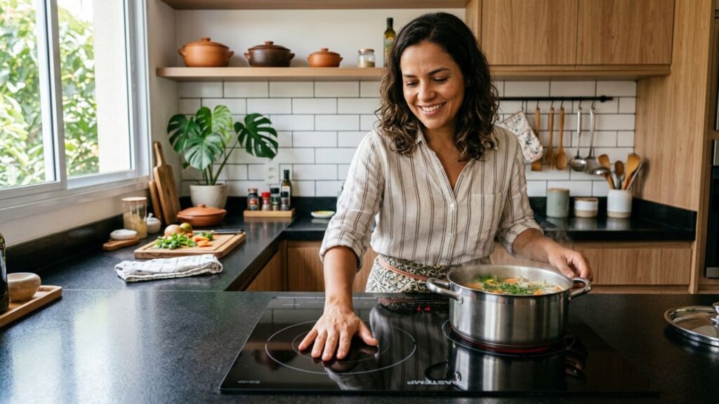 O funcionamento por ondas eletromagnéticas impede que a superfície de vitrocerâmica aqueça sem o contato direto com panelas de fundo ferromagnético adequadas. Esse mecanismo de segurança é fundamental para evitar queimaduras acidentais em crianças e animais domésticos que circulam pela cozinha.