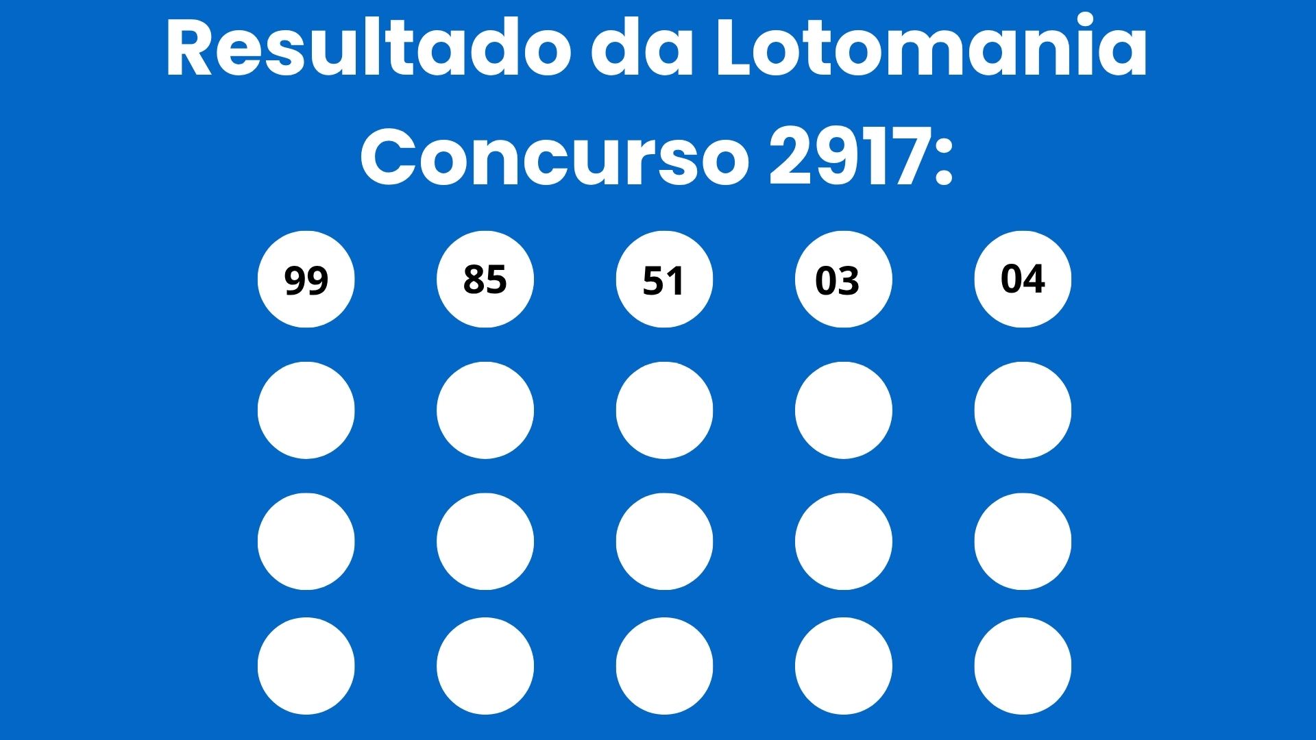 O sorteio da Lotomania 2917 foi realizado nesta segunda-feira (27/04). O prêmio principal estava estimado em R$ 1.5 milhão . Confira os números sorteados e os ganhadores.