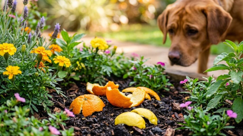 O uso de cascas de frutas cítricas, como laranja e limão, também funciona como um excelente repelente natural para cães e gatos domésticos. O odor ácido é evitado por quase todas as raças, mantendo a ordem nos canteiros sem causar danos às pétalas das flores.