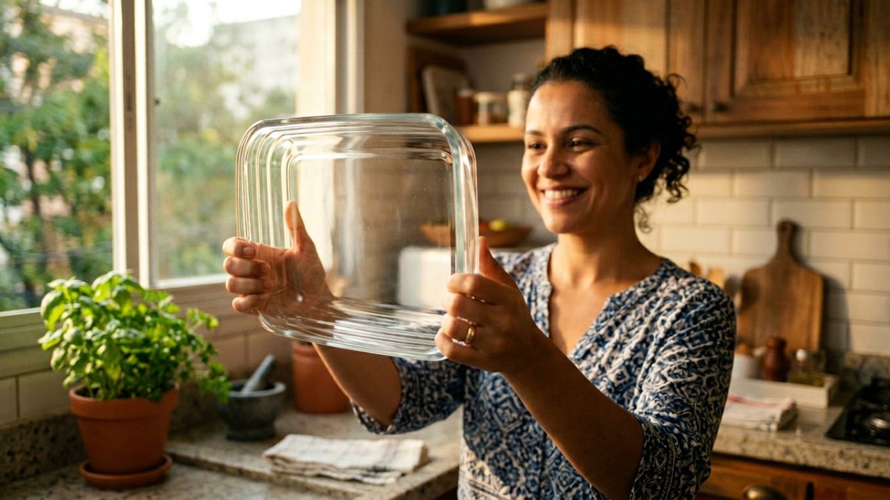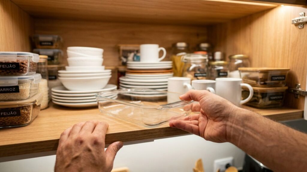Secar bem a peça com um pano de prato limpo evita que minerais presentes na água formem novas manchas esbranquiçadas. Guardar a assadeira em local seco e arejado preserva a transparência por muito mais tempo.