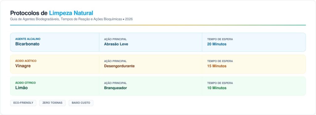 A combinação de agentes ácidos e abrasivos leves é a solução mais recomendada por especialistas em organização doméstica no Brasil. O uso correto de Bicarbonato de Sódio e Vinagre de Álcool ajuda a dissolver crostas antigas.