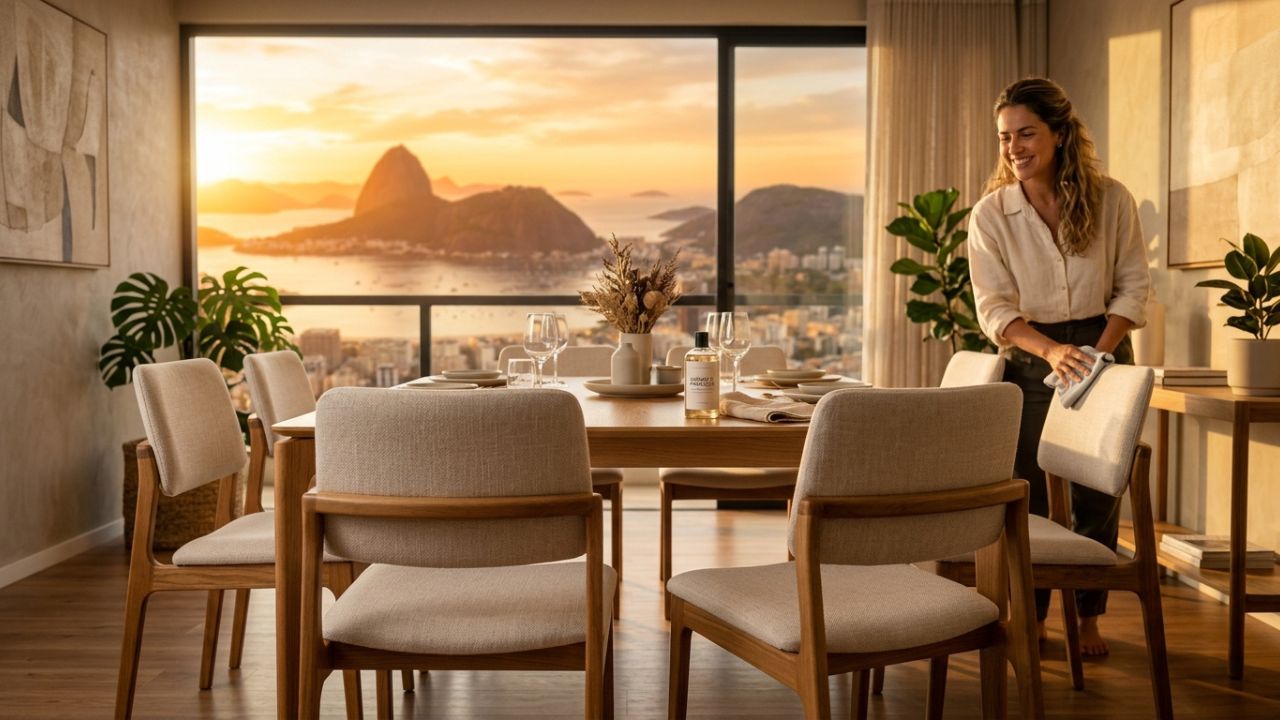 Manter as cadeiras de jantar impecáveis exige cuidado constante com os resíduos de alimentos que caem sobre o estofado. O segredo para um tecido limpo está na escolha dos produtos certos e na técnica de aplicação.