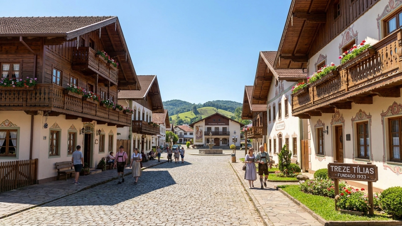 Treze Tílias guarda em menos de 9 mil habitantes uma herança que muitas cidades grandes da Europa perderam. Arquitetura tombada, banda centenária, festa de quase um século e gerânios nas janelas formam um conjunto raro no mapa brasileiro.