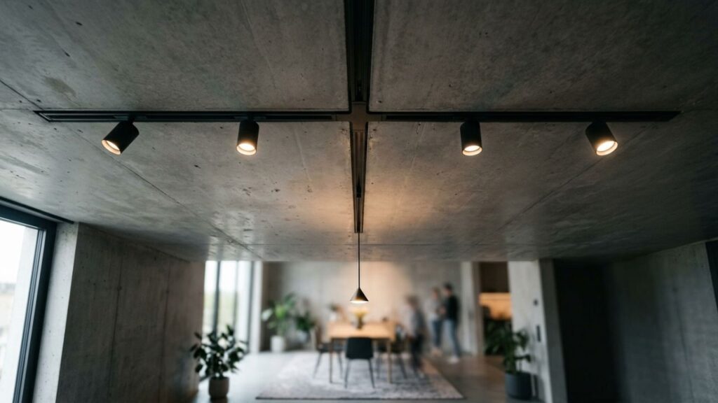 A transição para projetos de iluminação mais dinâmicos e industriais está eliminando a soberania dos tetos rebaixados com sancas de gesso. O uso de trilhos eletrificados surge como a principal tendência para 2026, priorizando a flexibilidade técnica.