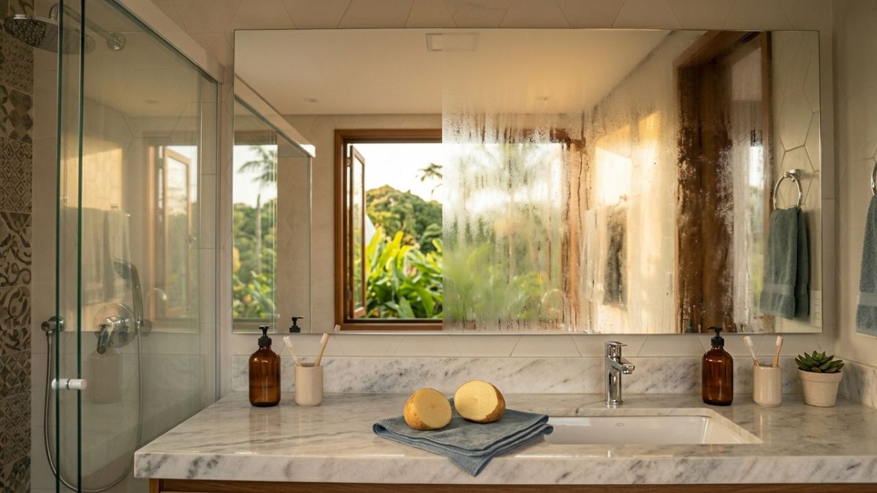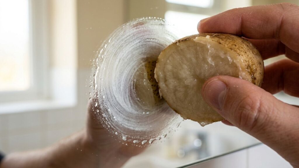 Método com batata limpa espelho sem químicos, dá brilho intenso e cria proteção contra vapor por vários dias – Créditos: Imagem Ilustrativa