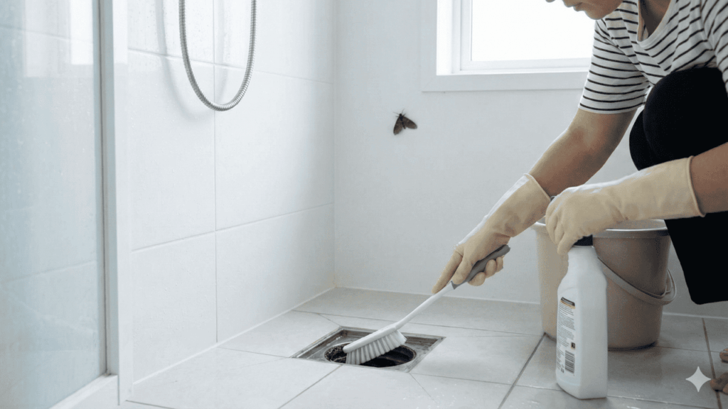 Para acabar com mosquitos de banheiro de forma eficiente, o foco principal deve ser a limpeza profunda dos pontos de umidade. Ralos, sifões e caixas de inspeção acumulam resíduos de sabonete, cabelo e gordura, que servem de alimento para as larvas. Em alguns casos, o uso moderado de desinfetantes específicos para ralos pode complementar a limpeza mecânica.
