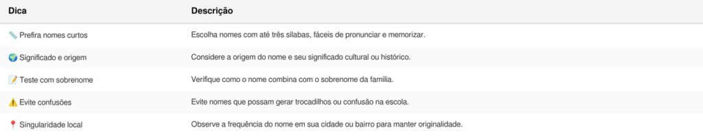 No fim, a escolha de um nome reflete cuidado, história e afeto. Ao considerar significado, praticidade e singularidade, os pais garantem que o bebê receba não apenas um nome, mas uma marca pessoal que o acompanhará com estilo e segurança. Portanto, vale pensar: que legado e que história você quer que o nome do seu filho conte?