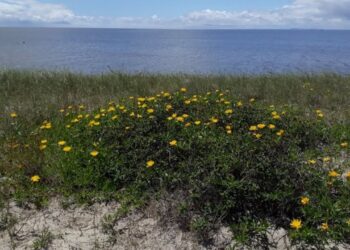 A margarida-da-praia (Grindelia atlantica) é uma planta nativa exclusiva do litoral sul do Rio Grande do Sul, encontrada apenas em ...